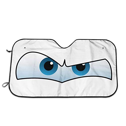 • ★ CUTE CARTOON ANGRY EYES DESIGN AND DIMENSIONS: The sun shade for car windshield with funny eyes design, keeping your cool while looking cute. Our windshield sun shade Universally Fit for SUV, Trucks, Vans AND RV that DO NOT EXCEED INSIDE MEASUREMENT of 51.2″ x 27.5″(130*70cm). Please measure your windshield to ensure you get the right size.