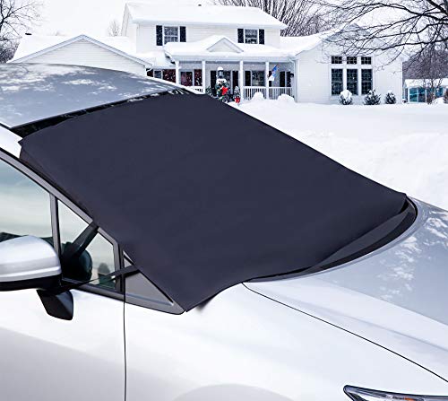 Amayrose Car Snow Cover, Car Windshield Snow Ice Cover With Magnetic Edges and Elastic Straps, Waterproof Windshield Winter Cover For Ice, Snow, Frost, Sun Protection, Extra Large Size Fits