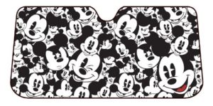 This officially licensed Mickey Mouse Expressions Windshield Sunshade by Plasticolor protects your vehicle interior from harmful UV rays while keeping cooler and showing off your style sense at the