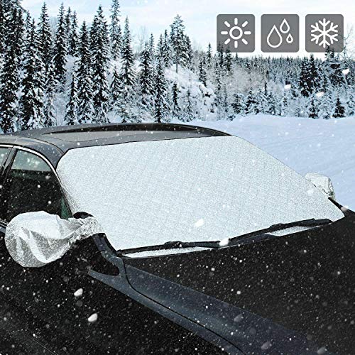 AUTSCA Car Windshield Snow Cover Sun Shade Protector with Rearview Mirror Protector and Anti-Theft Edges (Mid)